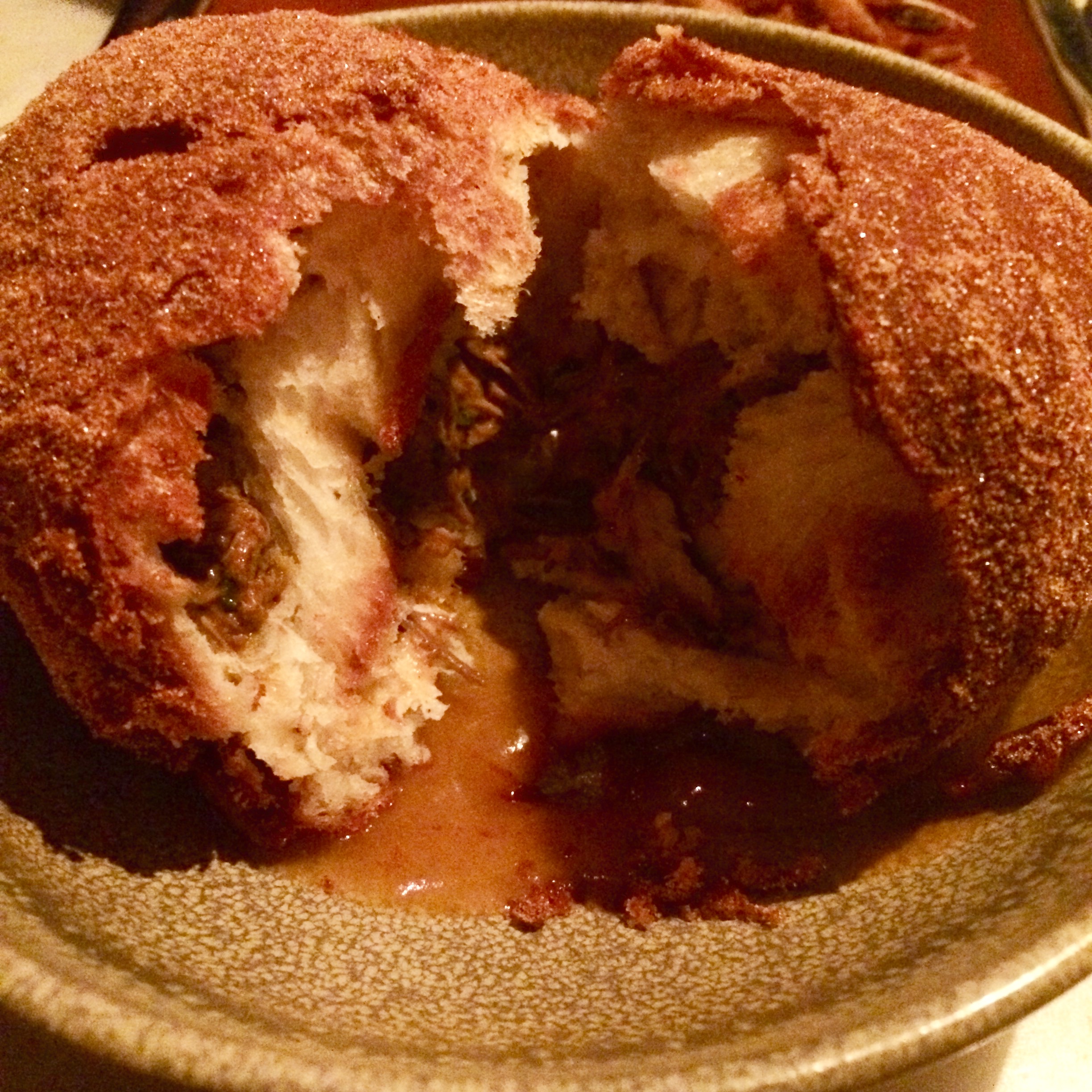 The BBQ-spiced pig ears had good crunch and some spicy seasoning that tasted like paprika, but was dripping with grease. It was placed in a paper bag that was drenched in oil. The seasoning was nothing special either and was very very salty. The donut looked great on the outside, but the inside was the complete opposite. The donut was basically a piece of bread, with only a quarter of it filled with the ox-cheek ragù. Donuts, to me should be light and fluffy; what you call a guilty pleasure. This donut though, was very gummy and thick, and tasted like old bread.
