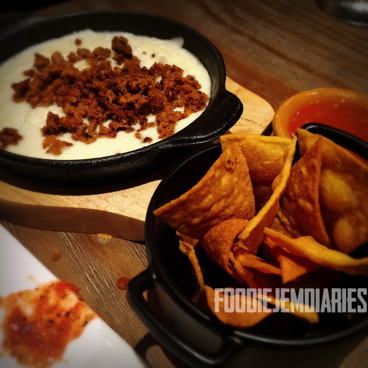 As usual, our meal began with a few drinks, though non-alcoholic this time. The Horchata (HK$38, top right), a traditional Mexican drink, was full of cinnamon flavour without being overpowering. A great start and tool to counteract the spicy Mexican food that is to come. We went on to order mains when we got distracted by the cheesy goodness Oaxaca Cheese Fundido. Yes, the name sounds funny, but the dish is no joke. Melted cheese topped with homemade chorizo and served with a side of nachos; simply ‘bomb’! The Chorizo was not too salty and went well with the cheese. The nachos, crunchy and crispy, you can tell was made fresh. Also a fun dish for sharing and first dates, pulling the sticky cheese with nachos.