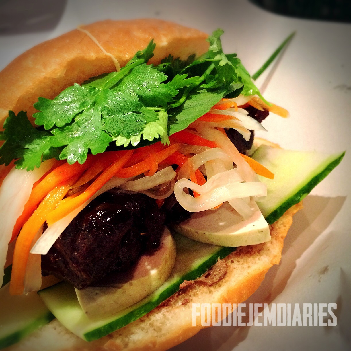 - Good bun that is not too soft with a generous filling of toasted tender meat, that had a sticky caramelised coating. Pickled carrot and daikon were crunchy and tangy, to balance the slight sweetness of the beef, add texture and balance out the flavours.