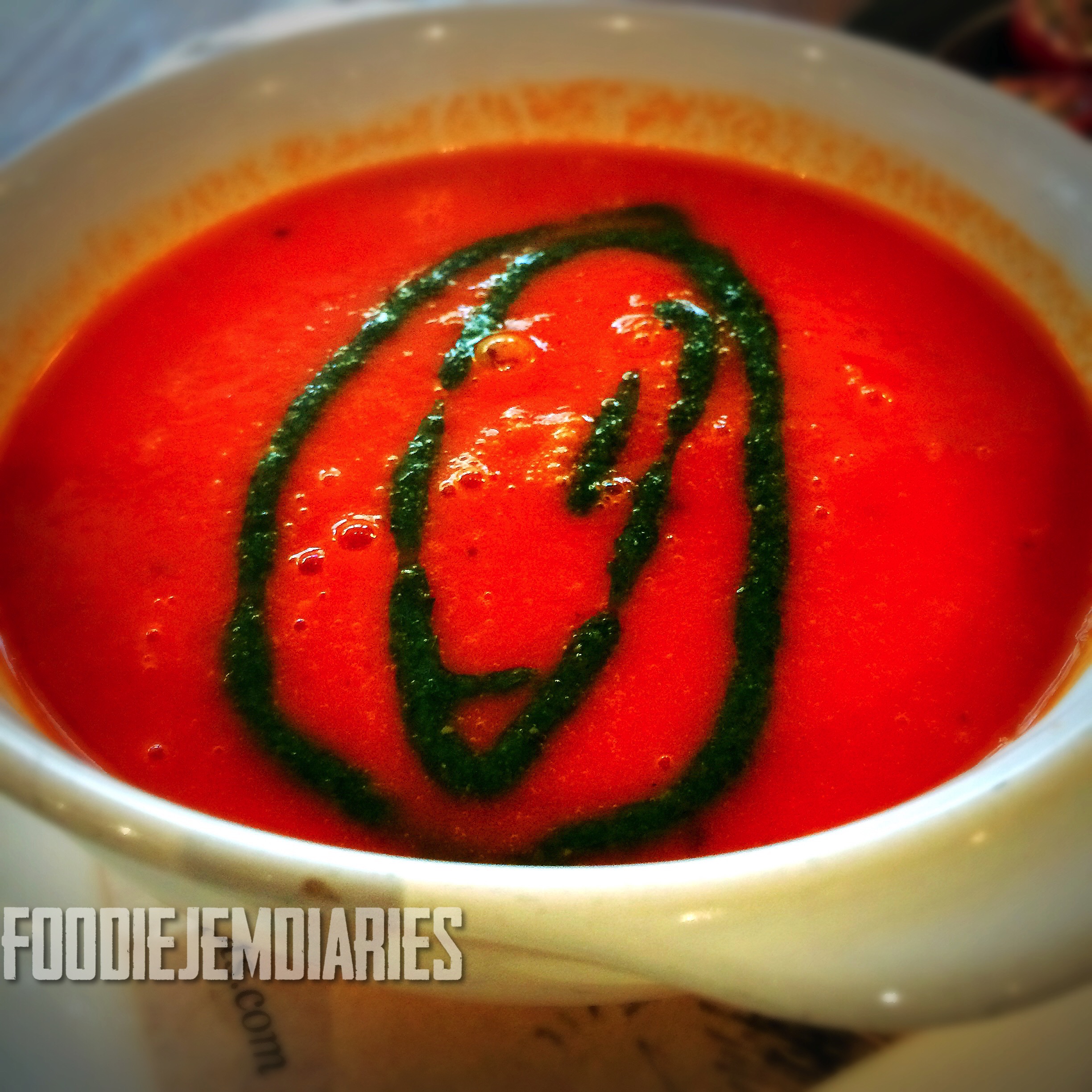 - Smooth and served with a drizzle of basil pesto on top, that enhanced the tomato flavour. Perfect for cold winter days.
