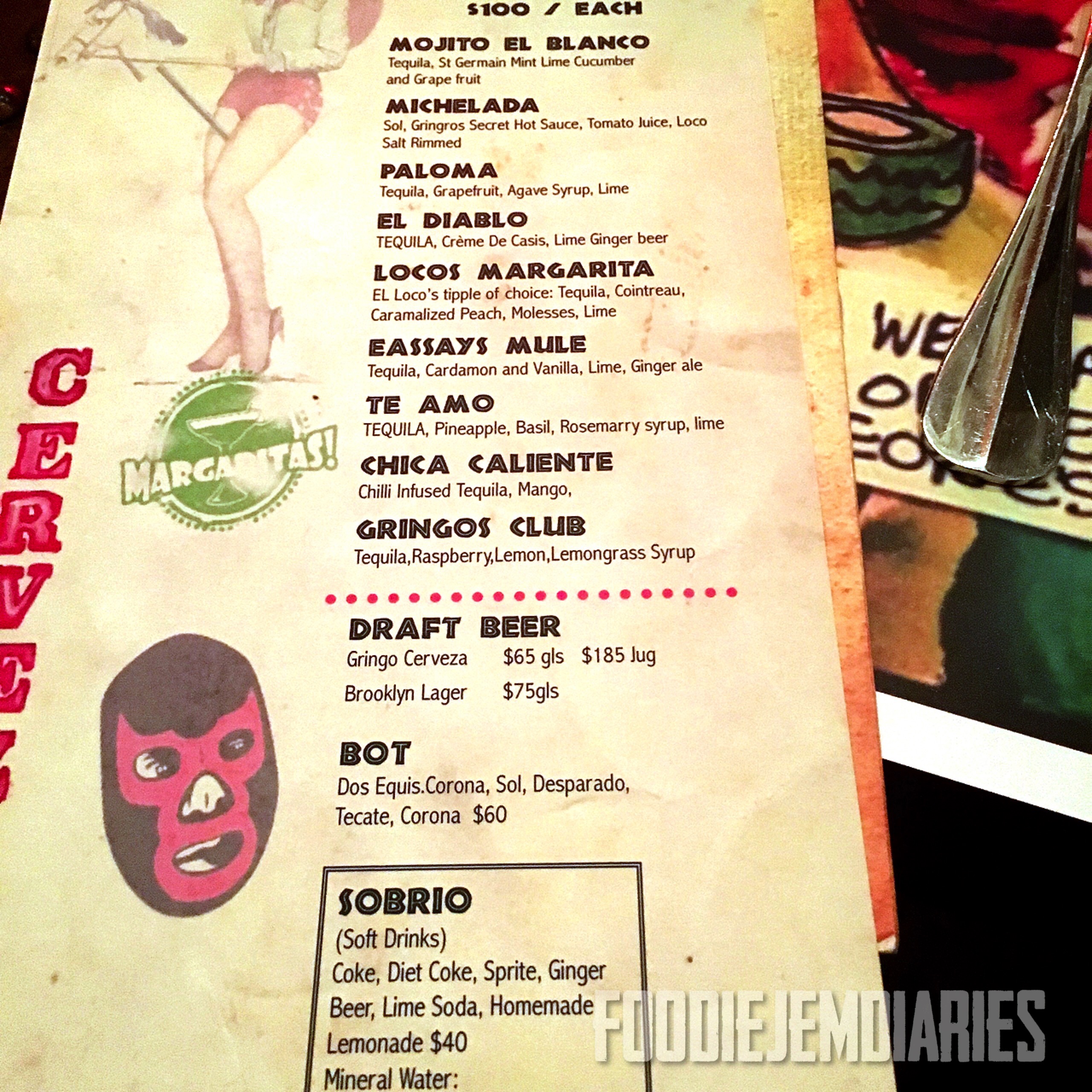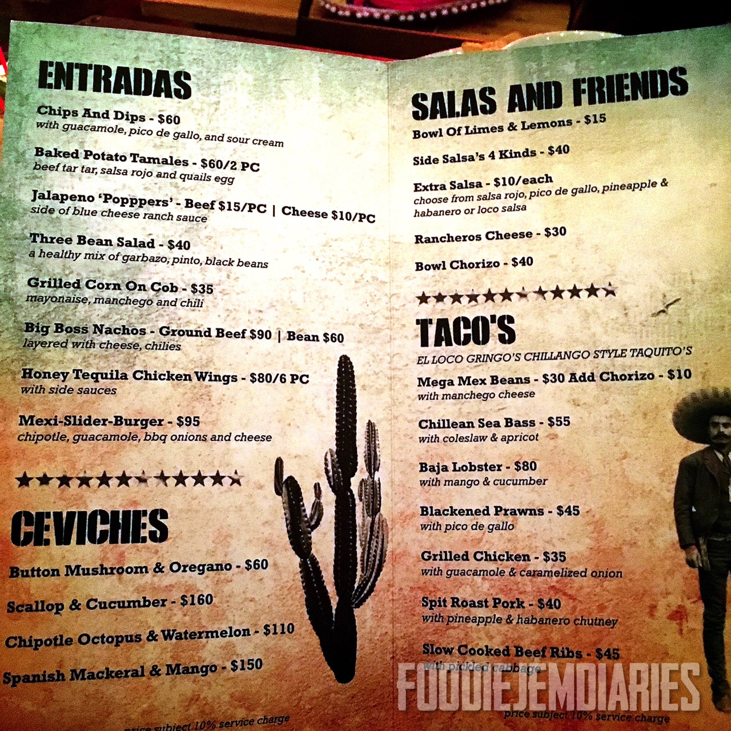 El loco Gringo’s food works around their drinks menu, where you are encouraged to order many plates or small bites to share and pair with cocktails. Tequila is certainly not in short supply! From infused tequila to Blanco and matured Anejos, as well as other beers and liqueurs. The Menu also features an array of fusion street foods, such as ceviche, tacos and the classic grilled corn.