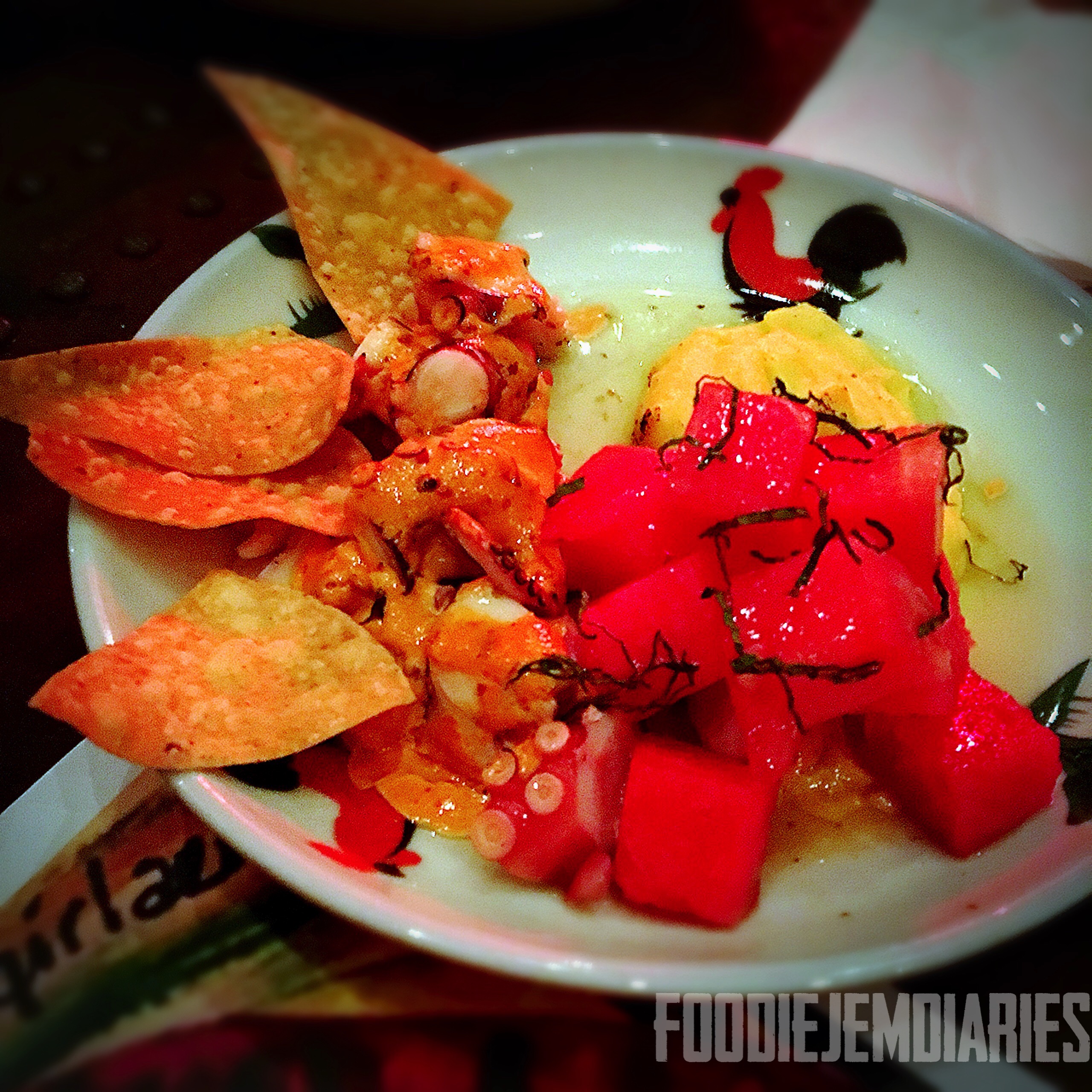 Smoky and creamy polenta paired with a slightly smoky octopus, heaven! The watermelon gave a refreshing spin to the dish and helped offset those burning jalapeños!