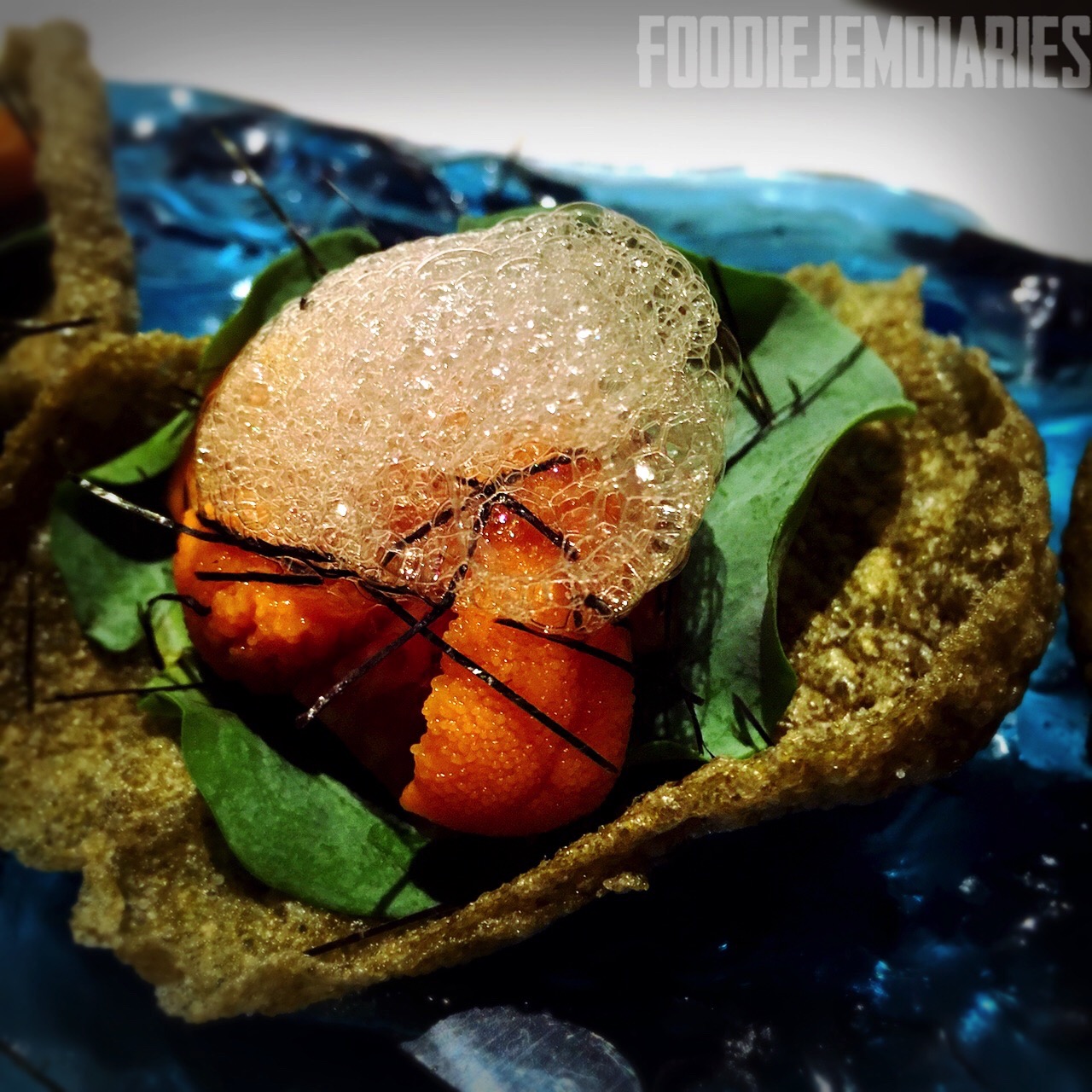 Sea Urchin $210 – Fig, Nori Cracker, Oyster Leaf, Ponzu