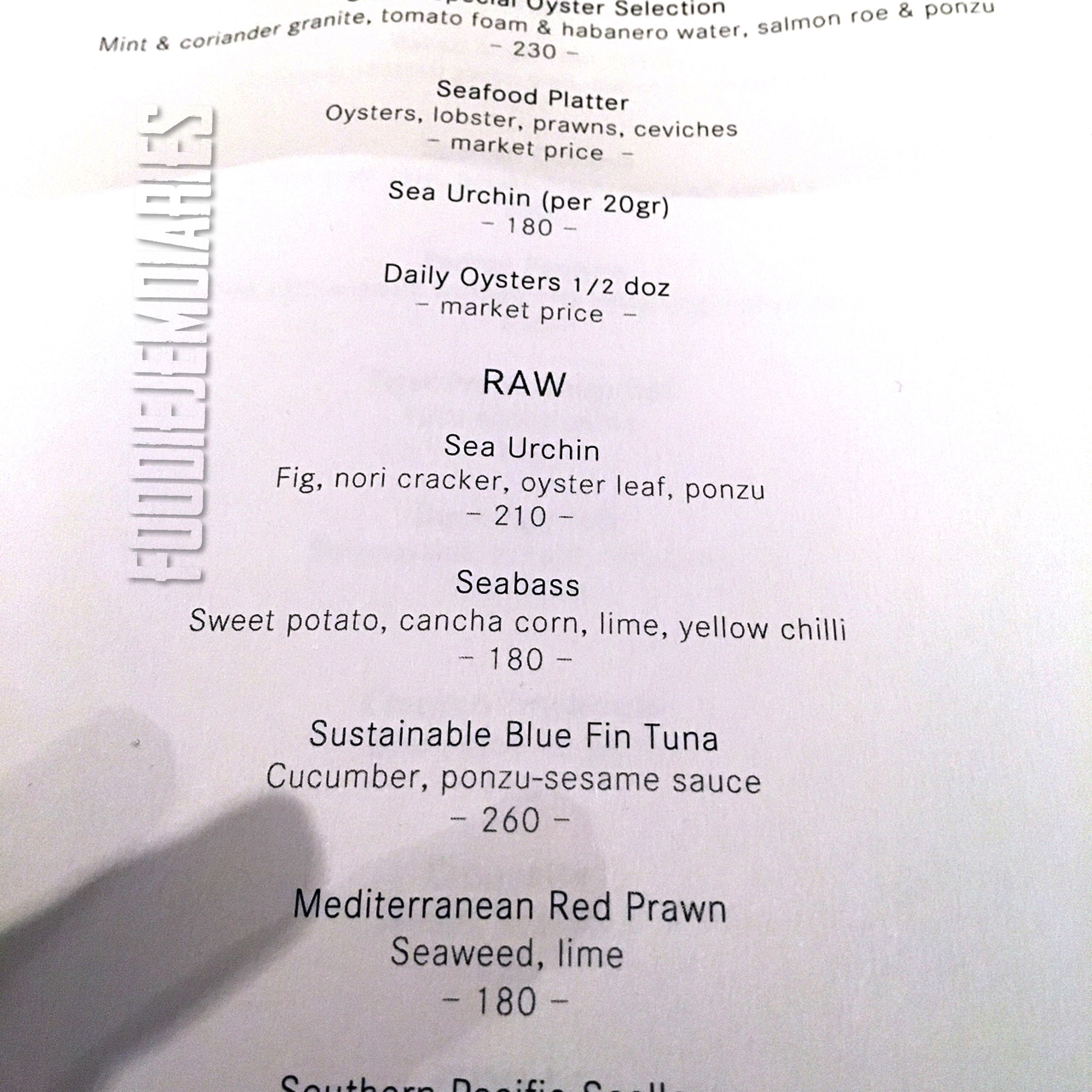 - Salty nori crackers overpowered everything and masked the taste of the Fig, ponzu and oyster leaf. At the same time enhancing the saltiness of the Sea Urchin.