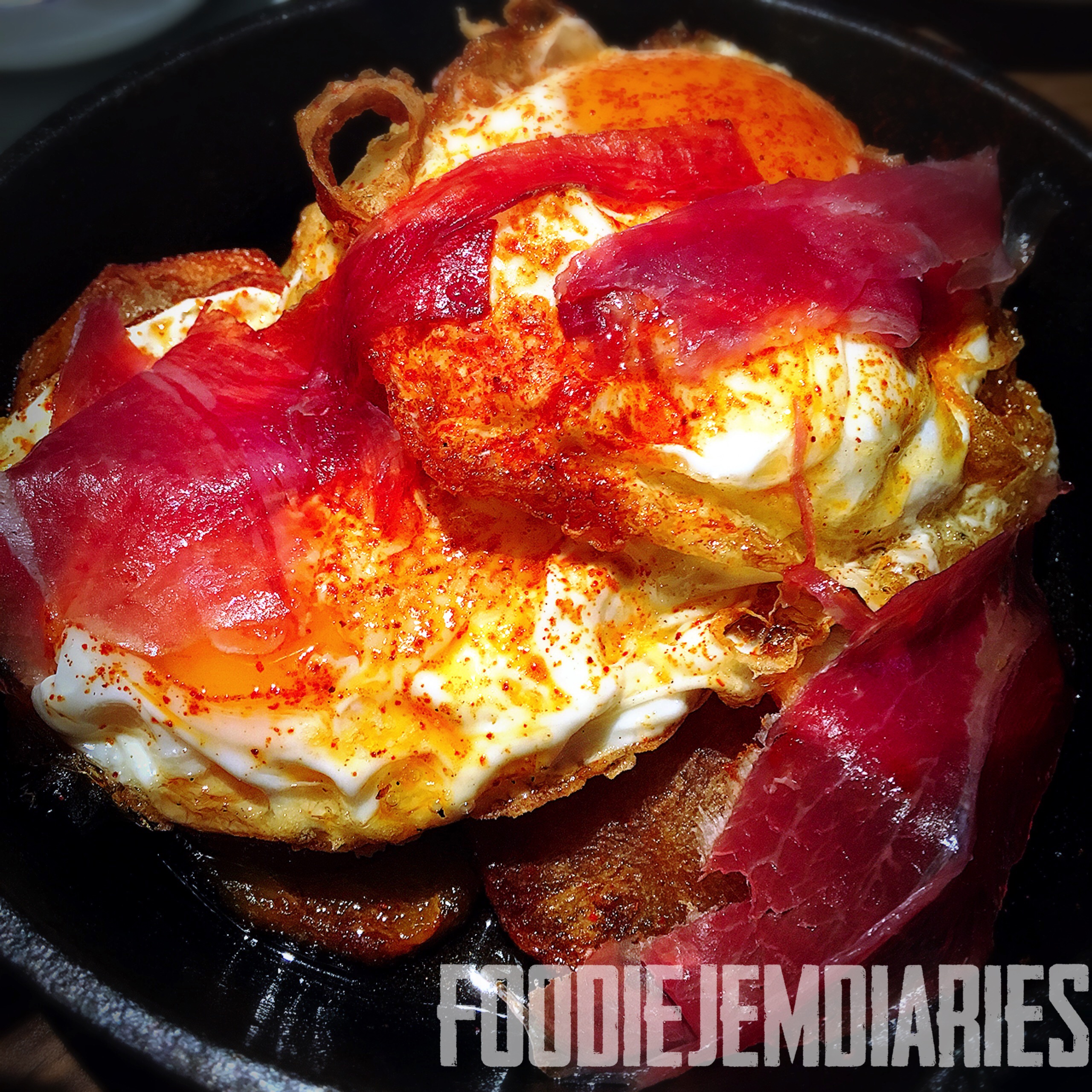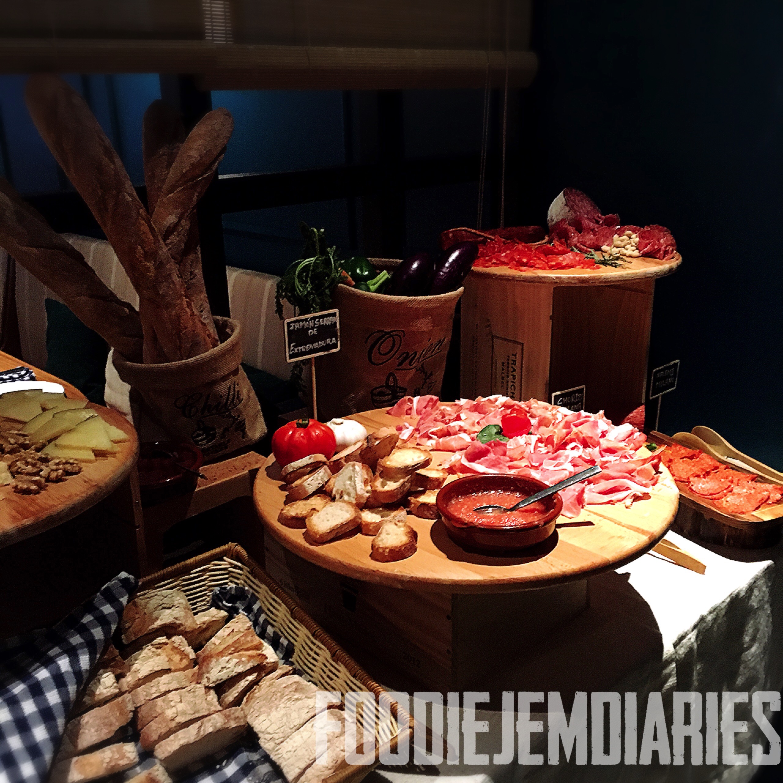 Ham with salmoreja– ham and melon puree with tomato on toast. Good quality ham with toasted bread. Yum