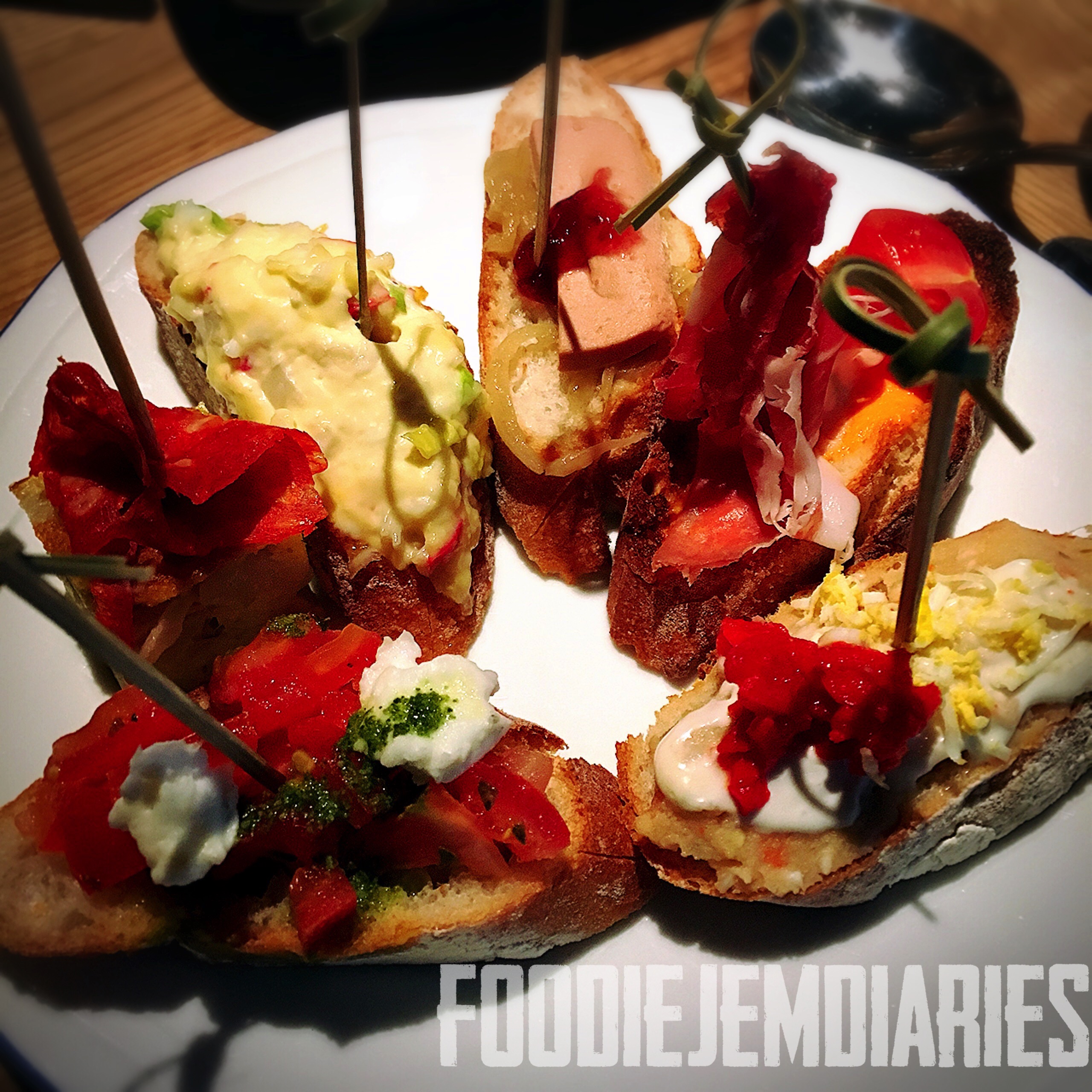 Foie gras and strawberry, caramelised onions– If bread was toasted, it would have been much tastier. Meh but not bad.