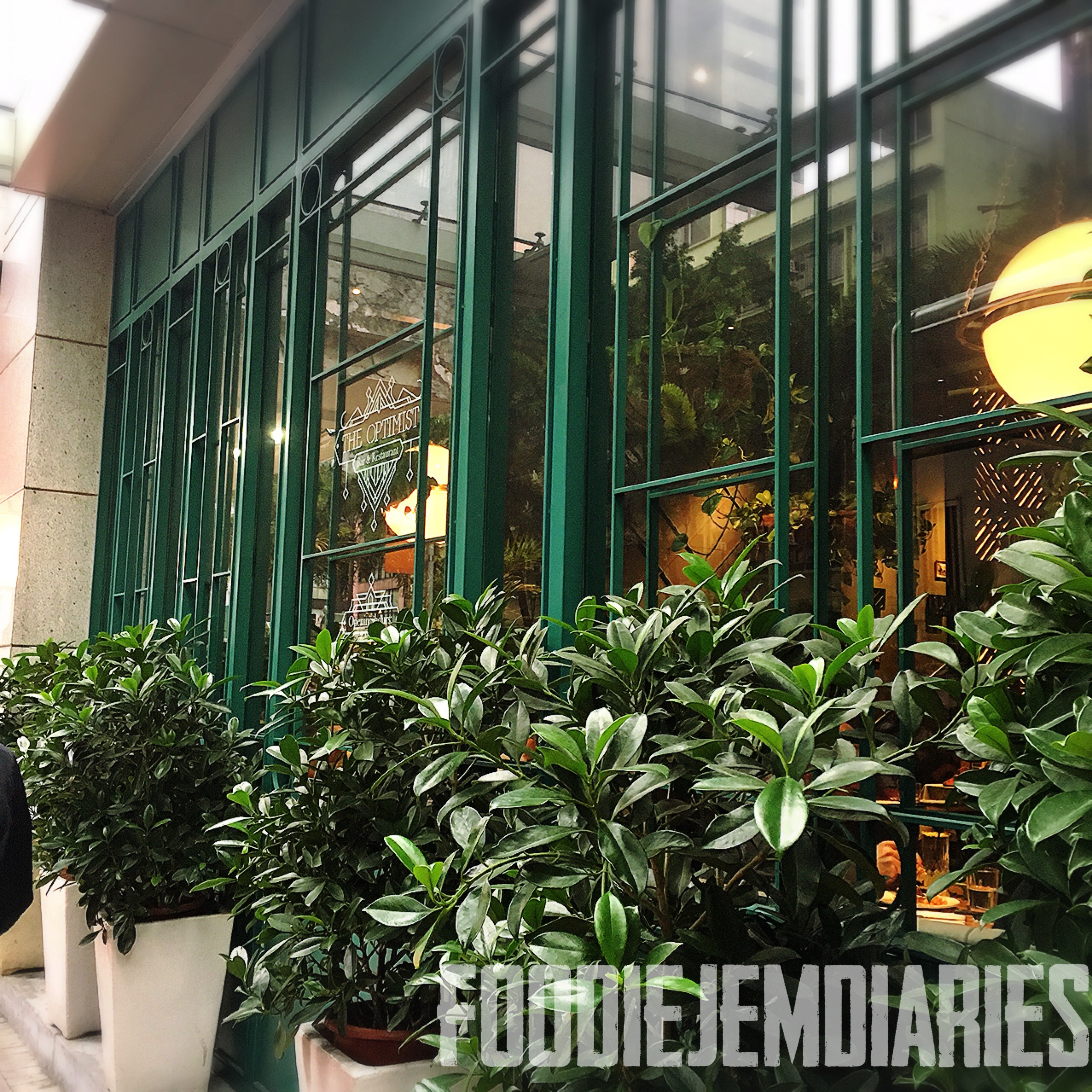 Hidden behind the streets of Hennessy Road is the Optimist. Decorated with green tiles that remind you of a florist, its organic and modern design stands out amongst the grey streets of Wan Chai.