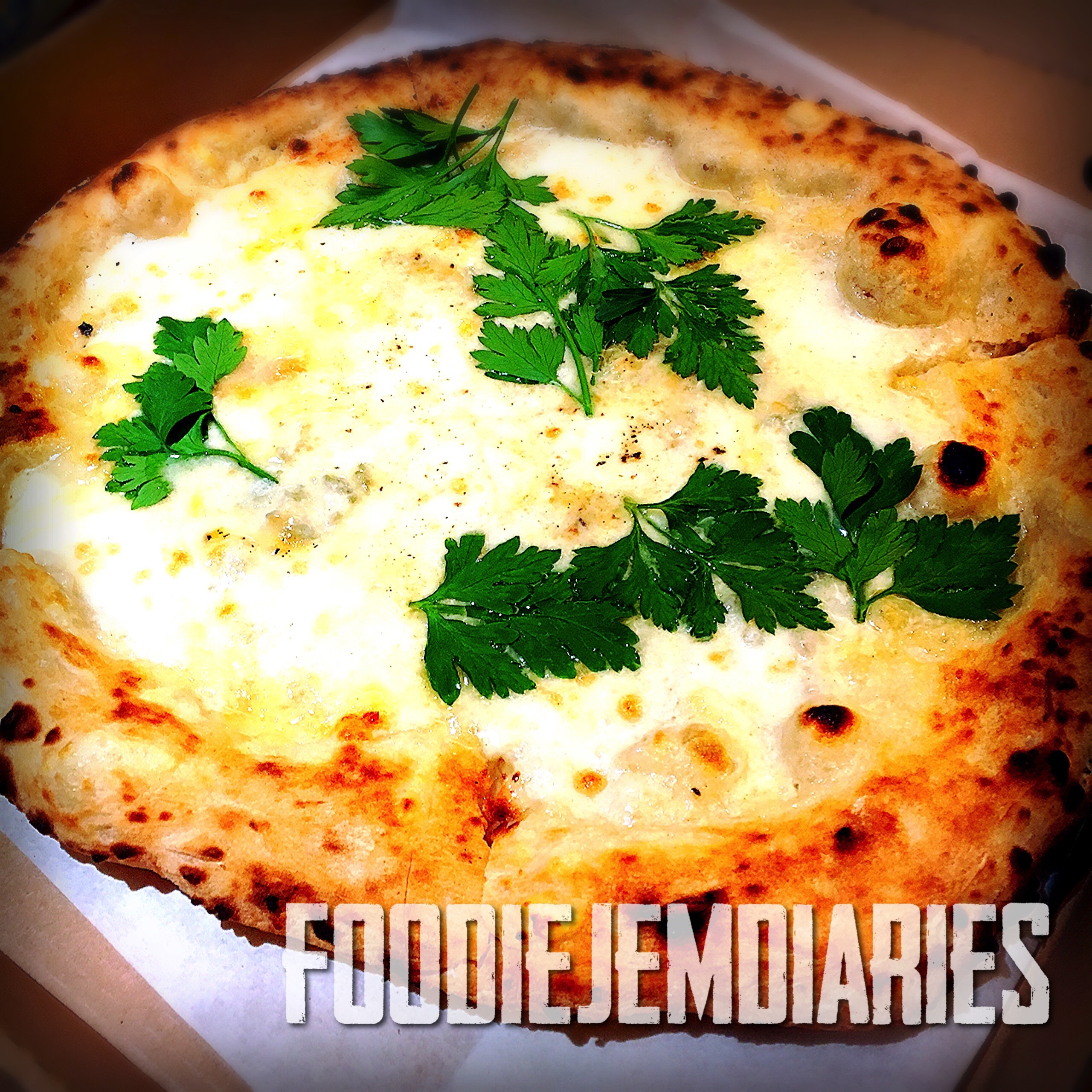 - Gorgonzola, polvolone piccante, fior di latte, pecorino, basil & Chili olive oil