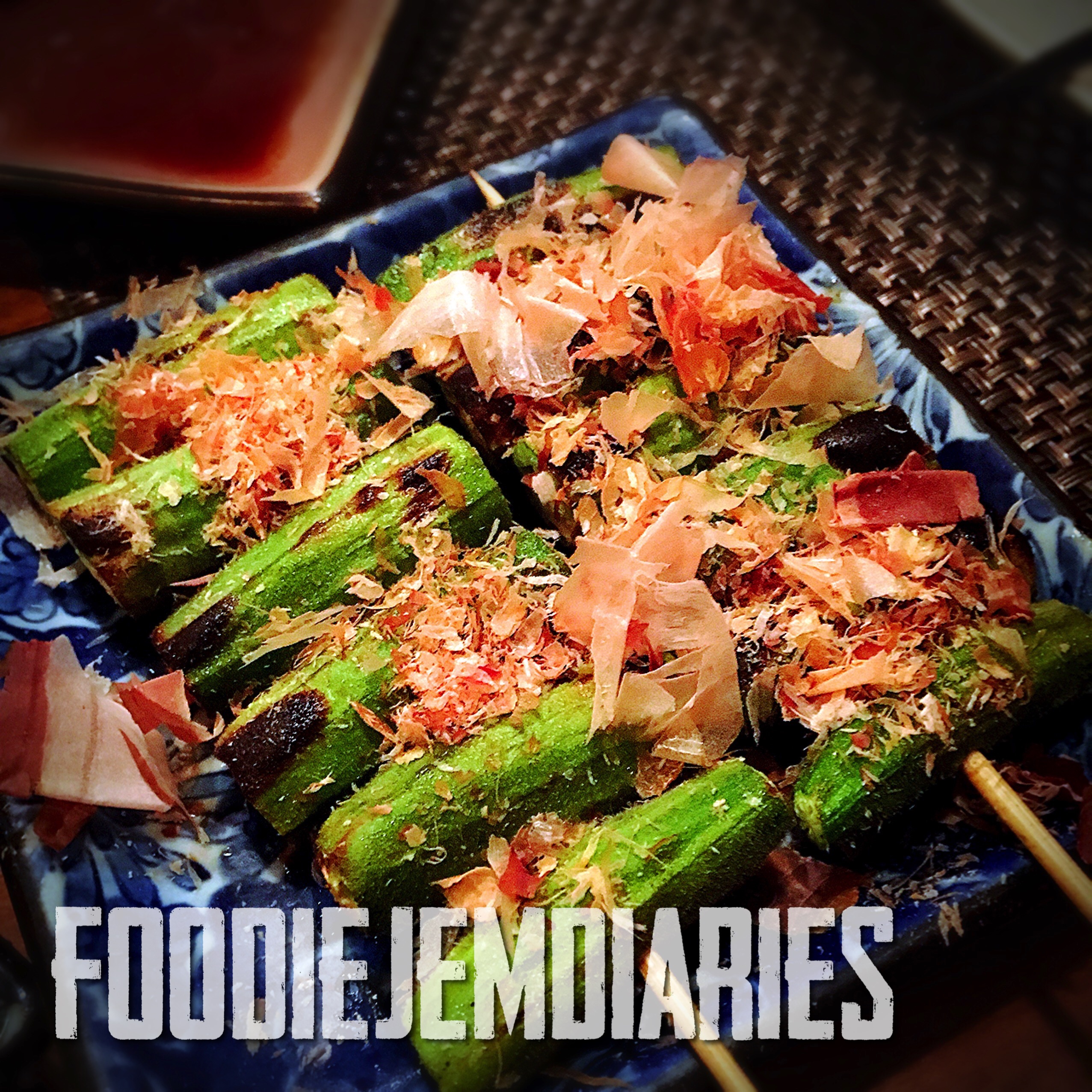 Okura with Bonito flakes and soy sauce
