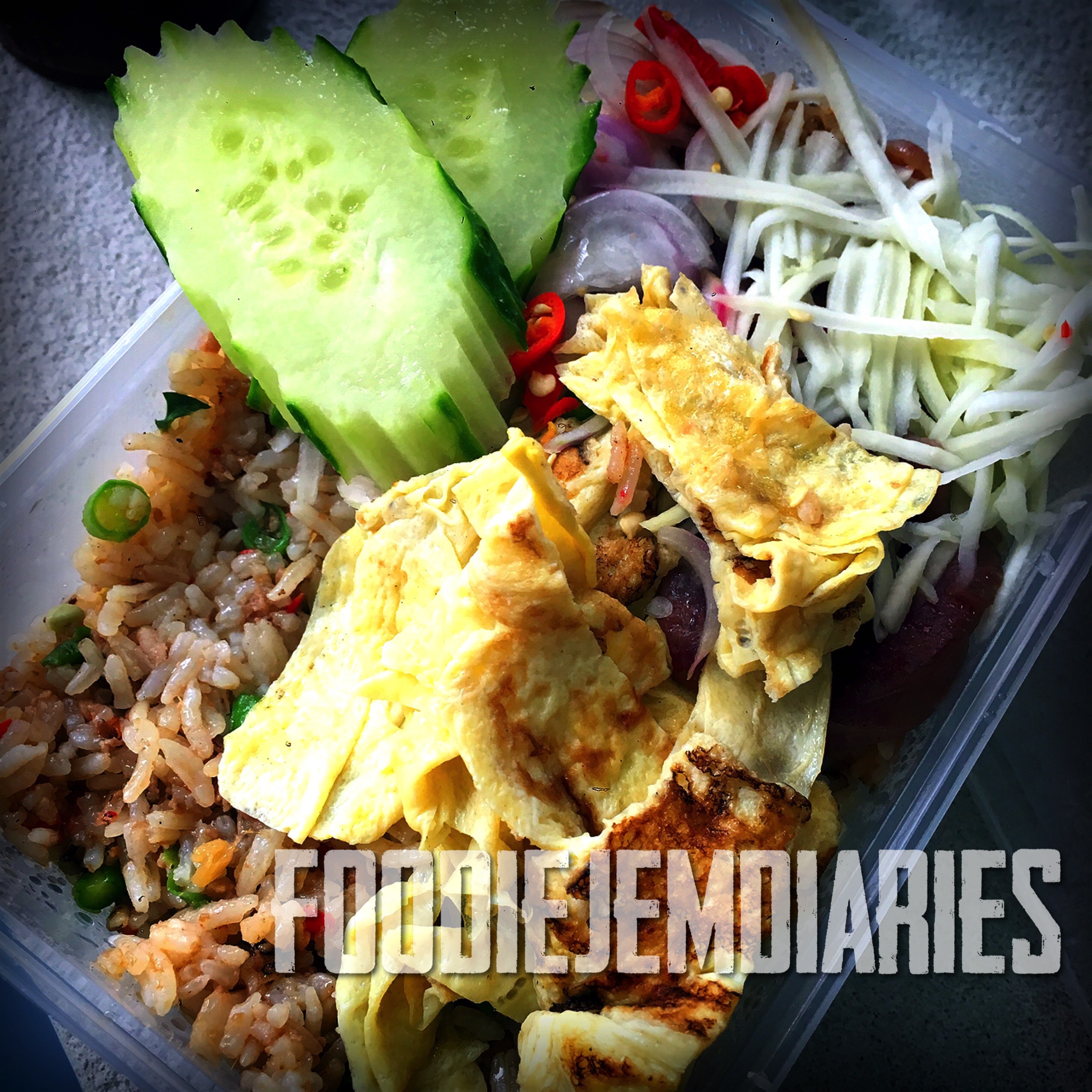 - Chilis mixed in to give a kick, not too spicy with thinly fried egg to downplay the spiciness.
