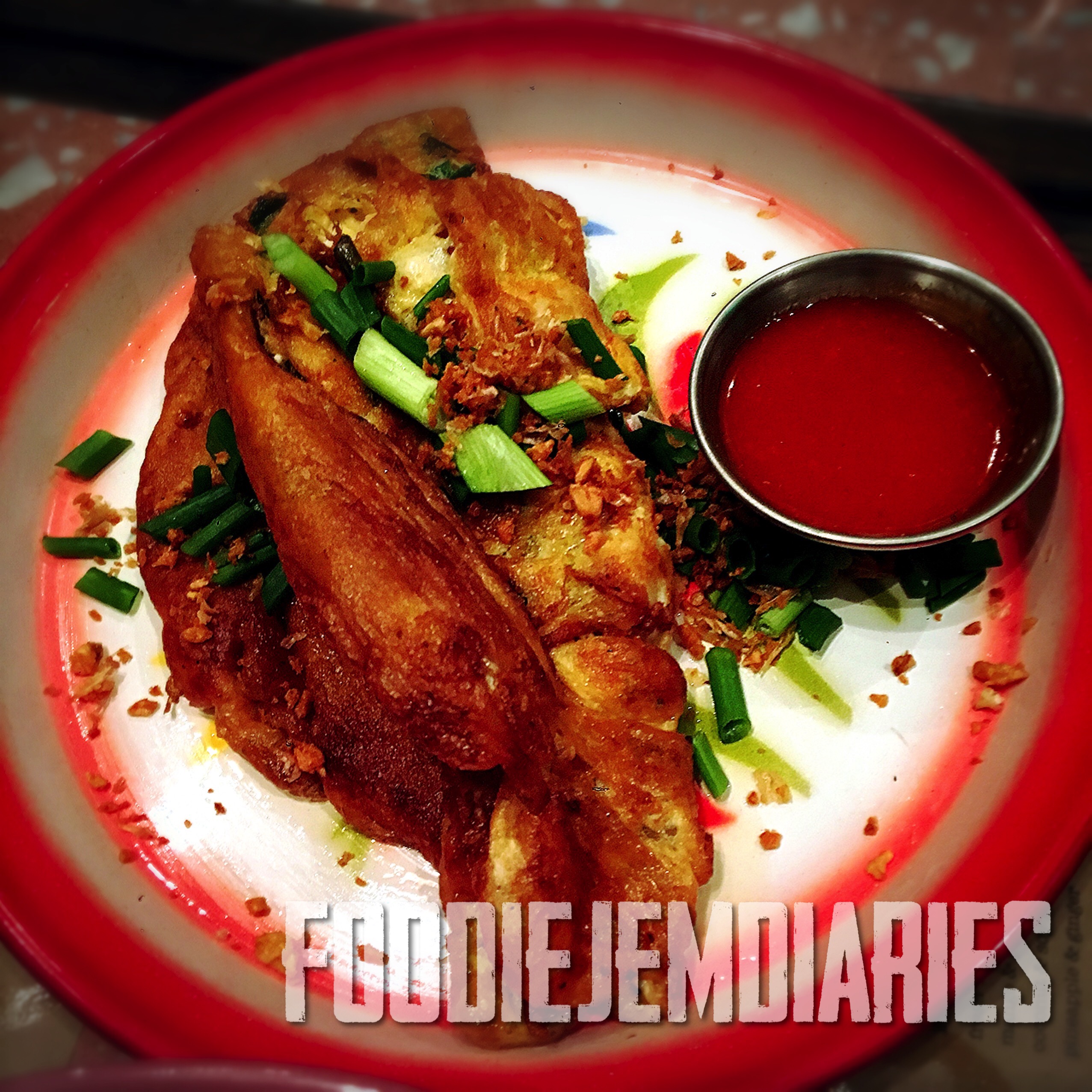 Thai Omelette of Crabmeat & Spring onions with Sriracha Sauce