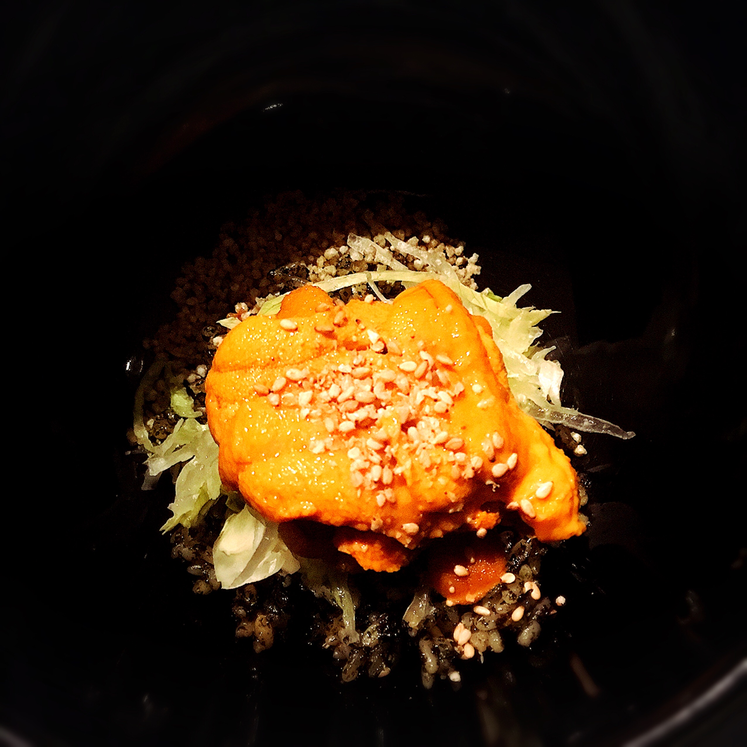 - Fried quinoa and seaweed rice with Kimchi and Sea Urchin (Uni)