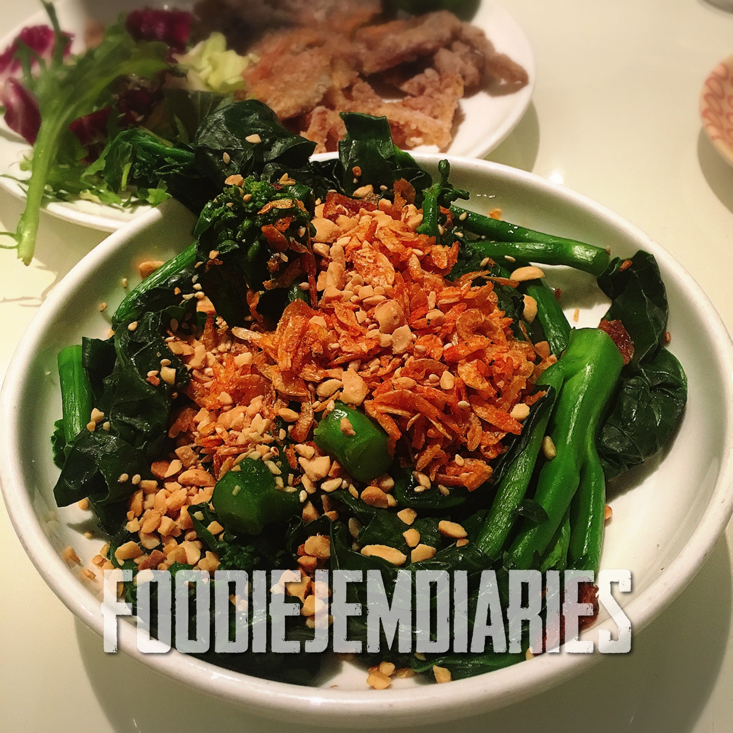 - Crispy and fresh, the sprinkling of peanuts and dried sakura shrimps add saltiness and texture. YUM!