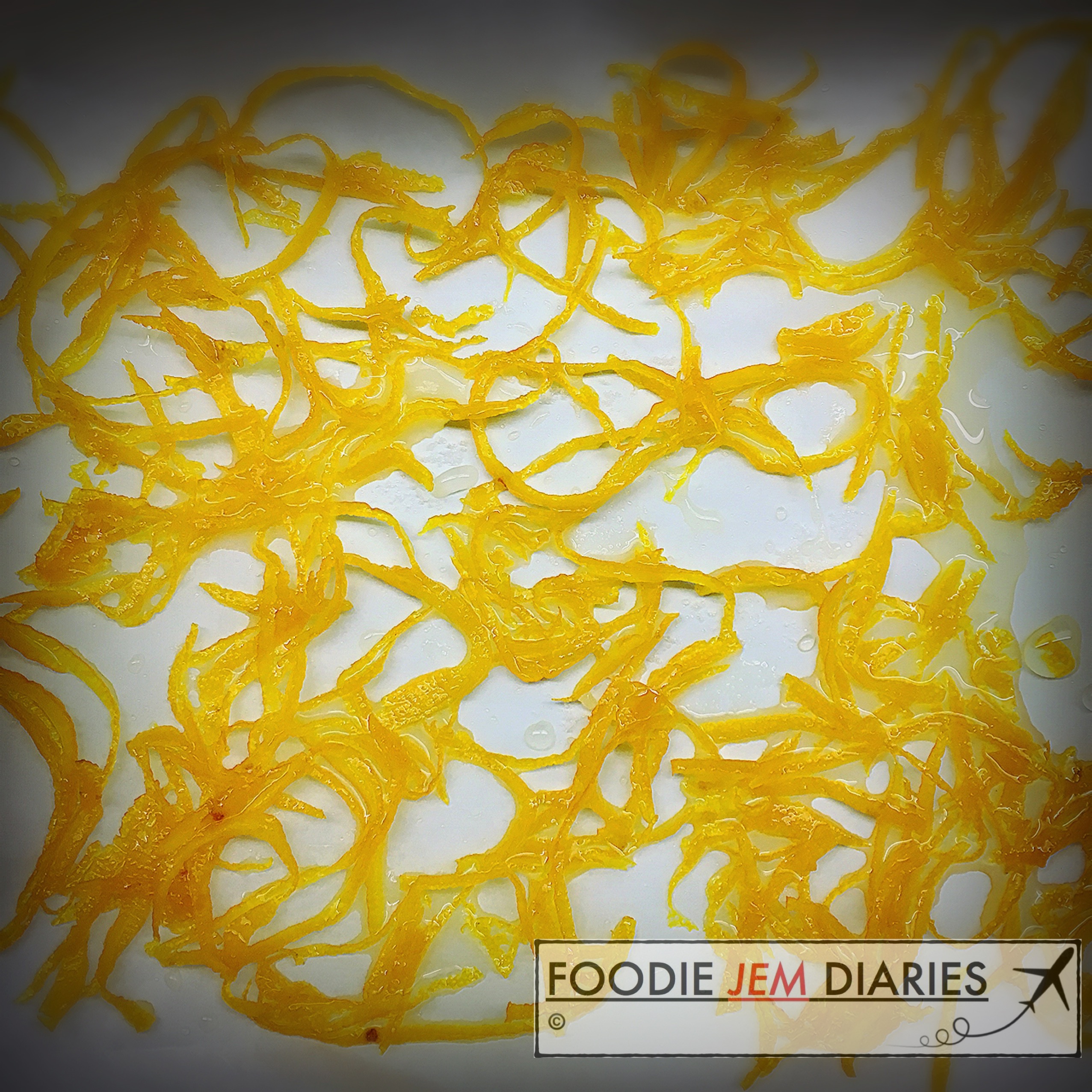 - Drain orange zest strands and save the orange water. Add zest to syrup [step3] and Let the zest simmer in the syrup for 10 minutes.