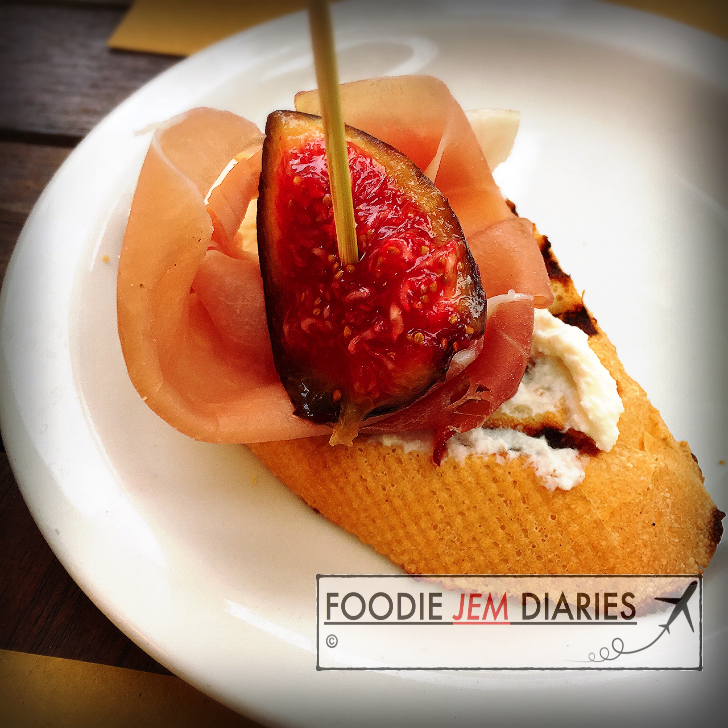 - Fresh fig with Parma Ham and cream cheese; tasty but nothing special.