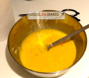 - Crack in the 2 eggs into the purée and whisk until well combined.